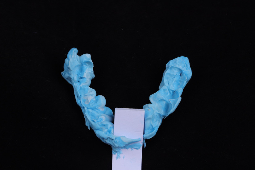 The patient is told to bite on the leaf gauge and doing protrusive and excursive movements to find the normal patient bite. The posterior space should be a minimum of 2 mm, which is to block the freeway space. After the checking that there is enough space, bit registration is recorded.
